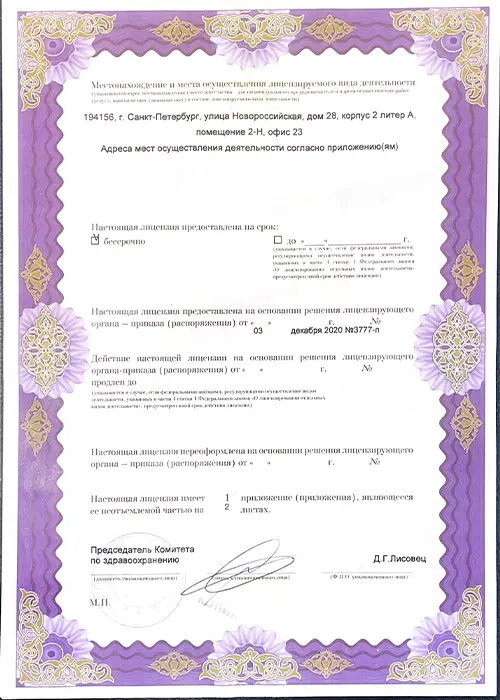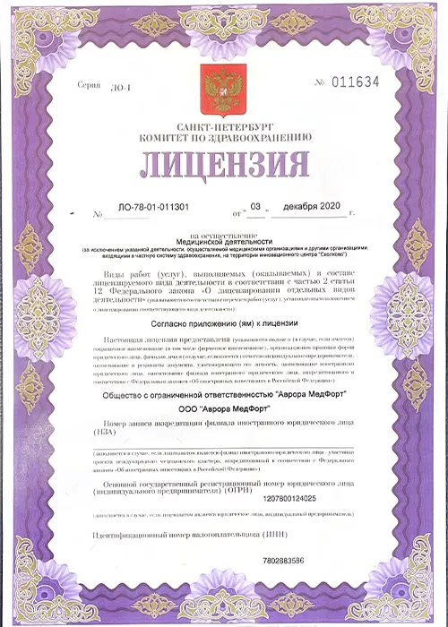 • Работаем по лицензии Минздрава РФ.